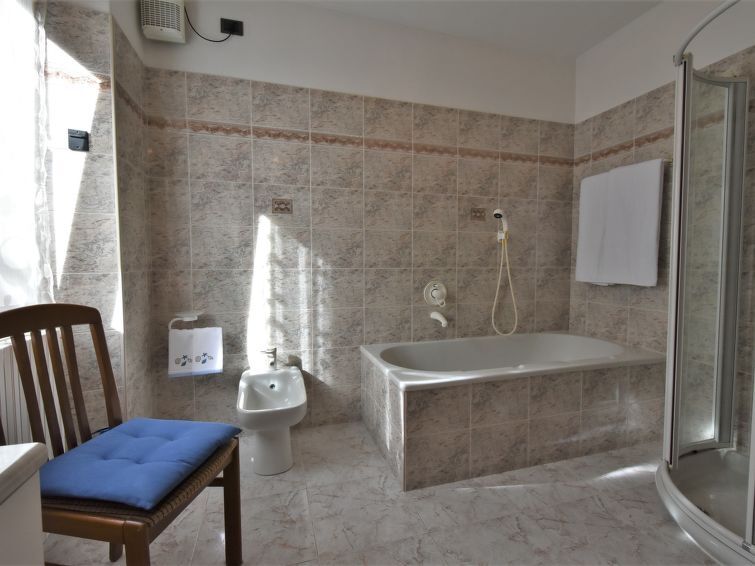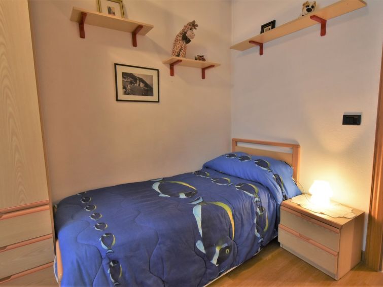 3-Zimmer-Wohnung 90 m2 im 1. Stock. Geräumig, zweckmässig und komfortabel eingerichtet: Wohn-/Esszimmer mit Schwedenofen (nur Deko), Esstisch und TV. Ausgang zum Garten. 1 grosses Doppelzimmer. 1 Zimmer mit 2 Betten. Küche (1 Kochplatte, Backofen, 3 Flammen, Toaster, Wasserkocher, Mikrowelle) mit Esstisch. Bad/Dusche/Bidet/WC. Heizung. Parkettboden. Garten. Terrassenmöbel, Gartengrill, Liegestühle (4). Sicht auf die Berge und den Garten. Zur Verfügung: Waschmaschine, Haartrockner. Internet (Wireless LAN, gratis). Bitte beachten: Nichtraucher-Haus. Eigener Eingang. IT014072C2SY265NGM