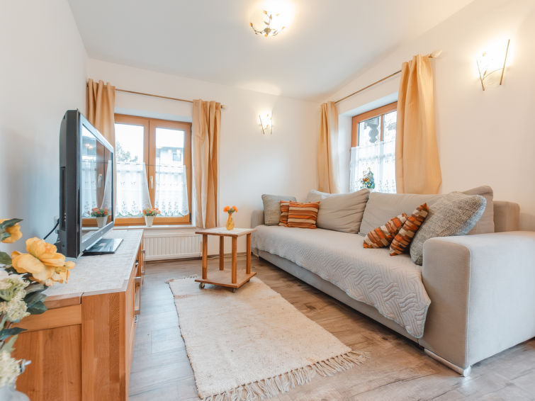3-Zimmer-Bungalow 55 m2. Modern und geschmackvoll eingerichtet: Eingang. Wohn-/Esszimmer mit Esstisch, Kabel-TV und Flachbildschirm. 1 Doppelzimmer. 1 kleines Doppelzimmer. Offene Küche (Backofen, Geschirrspüler, 4 Glaskeramikplatten, Toaster, Wasserkocher, Mikrowelle, Tiefkühler, elektrische Kaffeemaschine). Dusche, sep. WC. Terrasse. Terrassenmöbel. Schöne Sicht auf die Berge. Zur Verfügung: Internet (WLAN, gratis). Bitte beachten: Nichtraucher-Haus. 2 Haustiere/Hunde erlaubt. Rauchmelder. W-Lan funktioniert zeitweise nur ausserhalb des Hauses. Achtung: Kleinkinder und Babies gelten als volle Person und können nicht kostenfrei mitgenommen werden. 50403-000215-2020