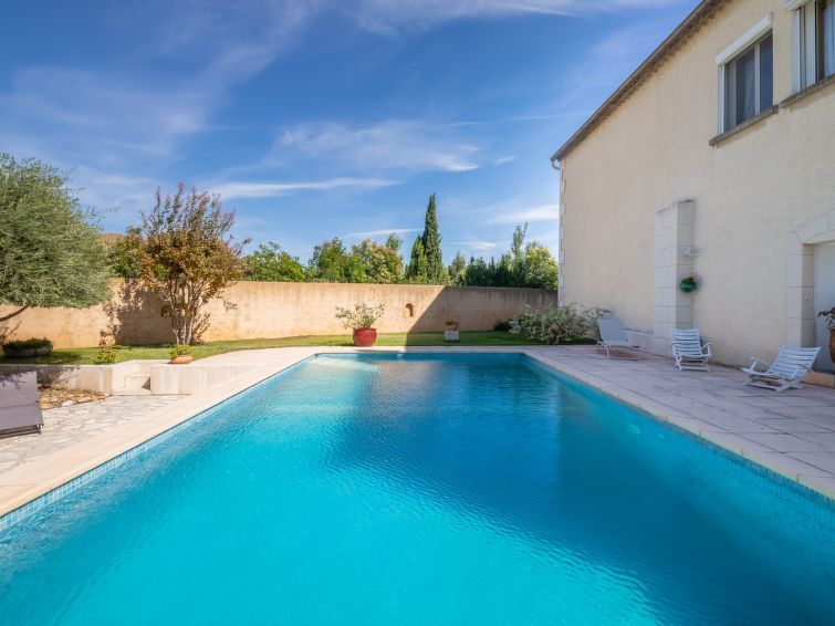 Het landhuis is verdeeld in twee delen, waarbij één deel wordt bewoond door de eigenaar (aparte ingang). Rijtjeshuis "Mas Madelon". Aan de rand van de plaats, 1 km van het centrum, aan een hoofdweg. Voor alleengebruik: terrein 1.000 m2 (omheind), openluchtzwembad (5 x 10 m, 130 - 150 cm diepte, seizoensgebonden beschikbaarheid: 25.Mei. - 30.Sep.) met oprolbaar afdekscherm. Poolhouse met koelkast, douche, WC en fornuis, terras (100 m2), tuinmeubelen, barbecue, parkeerplaats op het terrein. Winkel 1 km, restaurant 1 km, bushalte "Bonpas" 2.3 km. Golfterrein (18 holes) 5 km, tennis 1 km. Vliegveld 5 km van het huis. Landweg weg loopt langs het huis. , Let op: afwasmachine en gas plancha beschikbaar in de pool house.