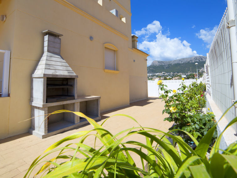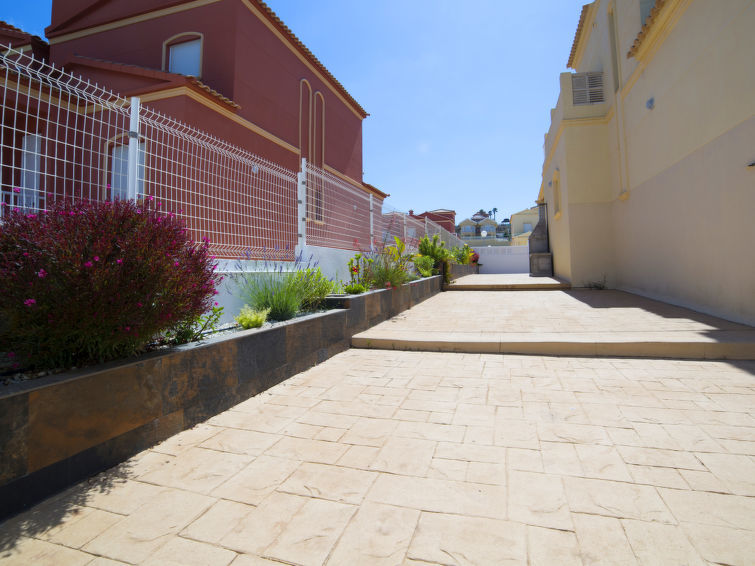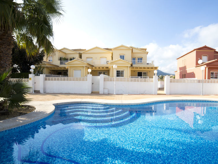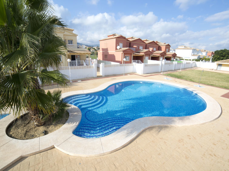 Pla Roig,Urb. Jazmines 1 km van Calpe: Groot, gezellig rijtjeshuis van 3 verdiepingen. 1.6 km van het centrum van Calpe, rustige ligging villa wijk, 1 km van zee, 1.3 km van het strand. Voor medegebruik: verzorgde tuin, openluchtzwembad (12 x 9 m, 117 - 177 cm diepte, seizoensgebonden beschikbaarheid: 01.Jan. - 31.Dec.). Buitendouche. Voor alleengebruik: terras, tuinmeubelen. Supermarkt 800 m, restaurant 1.1 km, bar 1.1 km, bushalte "Parada Bus" 450 m, zandstrand 1.3 km. Jachthaven 1.5 km, jachthaven 3.5 km, golfterrein (18 holes) 12.2 km, zeilschool 3.5 km, tennis 1.5 km. Attracties in de buurt: Aqualandia,Mundomar 22.3 km, Terra Mítica,Terra Natura 29.3 km, Benidorm Palace en Benidorm 21 km, Peñon de Ifach 2.5 km. De eigenaar accepteert geen jeugdgroepen.