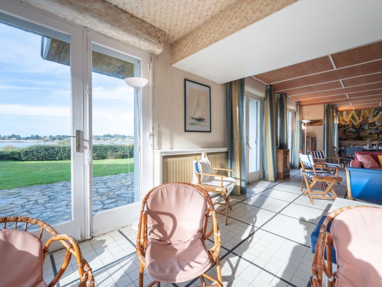 Villa "La Villa Tribale", van 2 verdiepingen. 10 m van zee, 150 m van het strand. Voor alleengebruik: park 2 ha (omheind). Tennisbaan (1 x hard court), parkeerplaats (voor 5 auto's). Supermarkt 3 km, restaurant 2 km, bar 2 km, bakkerij 2 km, café 2 km, zandstrand "Kernevest" 900 m. Jachthaven 1.5 km, golfterrein (18 holes) 12 km, zeilschool 900 m, wandelroutes 10 m vanaf het huis. Attracties in de buurt: La Trinité Sur Mer 2 km, Carnac et ses alignements 7 km, Presqu'île de Quiberon 15 km, Vannes 35 km, Belle ile en Mer, Houat, Hoedic. Wandelgebied Le Golfe du Morbihan 30 km.