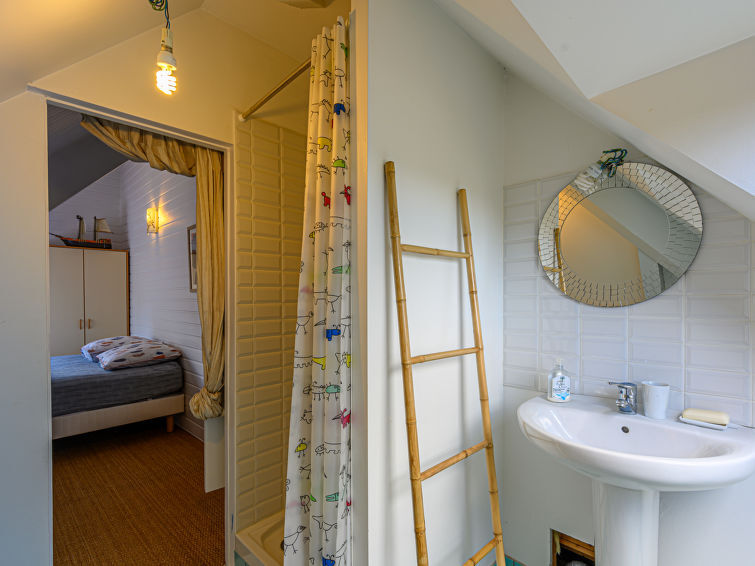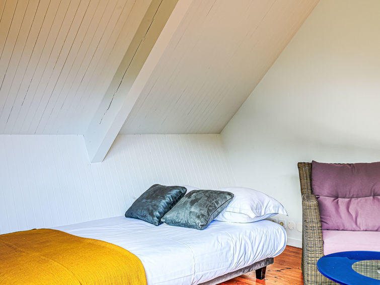 Villa "Villa Pyramide II", van 3 verdiepingen. Huurobject bestaande uit hoofd-/ bijgebouw, aan de rand van de plaats, 2 km van het centrum van Saint-Philibert, 50 m van zee, van het strand, aan een doodlopende weg. Voor medegebruik: tennisbaan. Voor alleengebruik: verzorgde tuin 370 m2, openluchtzwembad verwarmd (11 x 5 m, 150 - 150 cm diepte, seizoensgebonden beschikbaarheid: 11.Mei. - 15.Okt.) met trap en alarminstallatie. Parkeerplaats (voor 5 auto's) bij het huis. Levensmiddelenwinkel 2 km, restaurant 2 km, bakkerij 2000 km, café 2 km, zandstrand "Kernevest" 900 m. Jachthaven 1.5 km, golfterrein (18 holes) 12 km, zeilschool 900 m, wandelroutes 50 m vanaf het huis. Attracties in de buurt: La Trinité-sur-mer 2 km, Carnac et ses alignements 7 km, Auray - Port de St Goustan 15 km, Presqu'île de Quiberon 25 km, Vannes 25 km, Belle-île, Houat et Hoëdic. Wandelgebied Golfe du Morbihan 20 km.