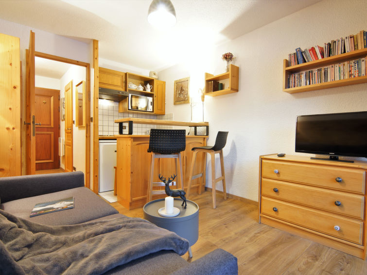 Studio 1-kamer 21 m2, op de begane grond, op het zuiden gelegen. Woon-/eetkamer met 1 2-pers divanbed (160 cm, lengte 190 cm), TV. Uitgang naar het terras, naar de zitplaats in de tuin. Hal met 1 opklapbed (80 cm, lengte 190 cm). Kookhoek (4-pits kookplaat, oven, waterkoker, elektrische koffiemachine). Bad/WC. Elektrische verwarming. Terras, zithoek in de tuin. Terrasmeubelen. Mooi uitzicht op de bergen. Ter beschikking: wasmachine. Internet (Internet (WiFi), extra). Niet rokers woning, geen parkeerplaats. TV alleen FR. Rookmelders. 74056 000385 ZT