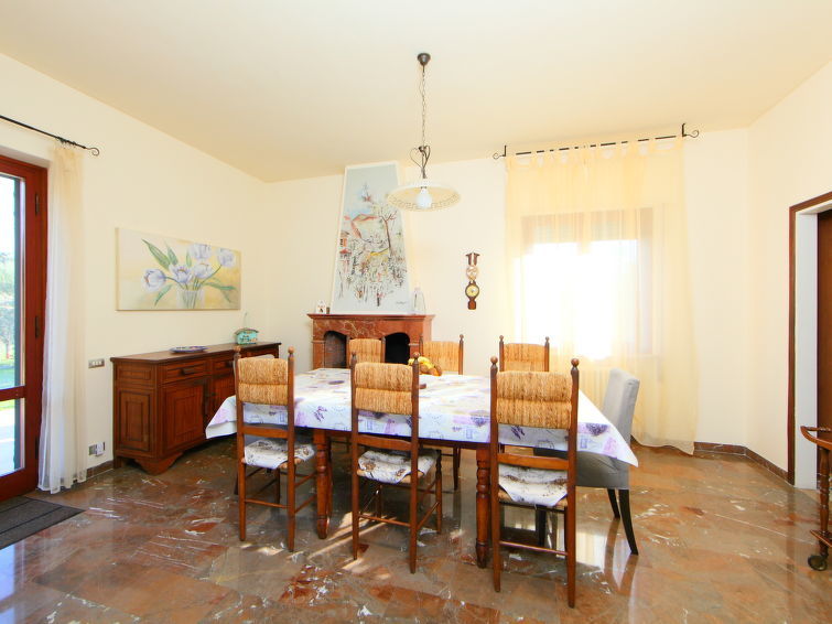 Huis 8-kamers 220 m2 op 2 verdiepingen. Comfortabel en gezellig ingericht: woon-/eetkamer met Sat-TV. Uitgang naar de veranda. 1 groot 2-pers. kamer. 1 kamer met 2 bedden. Kleine keuken (4-pits kookplaat, oven, afwasmachine, broodrooster, magnetron, diepvriezer, elektrische koffiemachine). Douche/bidet/WC. Bovenverdieping: woonkamer met open haard, bibliotheek en Sat-TV. Uitgang naar het terras. Eetkamer met open haard. Uitgang naar de tuin, naar het terras. 1 2-pers. kamer. Uitgang naar het balkon. 1 kamer met 2 bedden. Uitgang naar het balkon. 1 kamer met 2 bedden. Keuken (4-pits kookplaat, oven, afwasmachine, magnetron, diepvriezer). Douche/bidet/WC. 2 kleine balkons 5 m2, terras 25 m2, terras 30 m2, ruime zithoek in de tuin 30 m2, tuin 200 m2. Terrasmeubelen, barbecue. Mooi uitzicht in de verte op zee en de bergen. Ter beschikking: wasmachine, strijkijzer, klamboe, kinderstoel, kinderbed tot 2 jaar, haardroger. Internet (WiFi, gratis). Parkeerplaats (omheind, 3 Auto's) bij het huis. Maximaal 1 huisdier/hond toegestaan. Rookmelders, brandblusser. IT046005C2PN98SQQ3