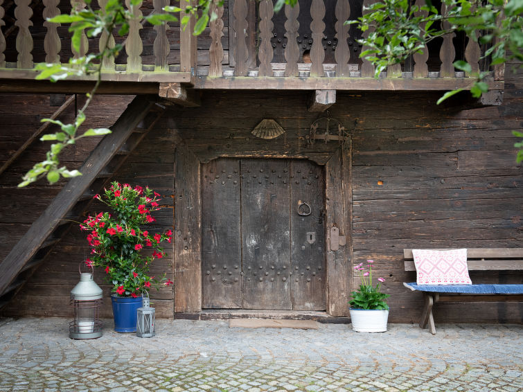 Chalet 4-kamers 120 m2 op 3 verdiepingen. Rustiek en gezellig ingericht: woon-/eetkamer met 1 divanbed, eethoek, Sat-TV, video, radio en tegelkachel. Uitgang naar de zitplaats in de tuin. Kleine, open keuken (4-pits kookplaat, oven, magnetron). Douche/WC. Bovenverdieping: (buitentrap), 2 kamers, elke kamer heeft 1 divanbed, 1 2-pers bed en Sat-TV. Douche/WC. Zolderverdieping: (buitentrap), 1 kamer met 1 divanbed, 1 2-pers bed, wastafel, aparte WC en Sat-TV. Balkon, zithoek in de tuin. Terrasmeubelen, ligstoelen. Mooi uitzicht op het landschap. Maximaal 2 huisdieren/honden toegestaan. Let op: steile buitentrap. Door het behoud van het originele karakter van het huis zijn zowel de deurposten als de hoogte van de ruimtes laag.
