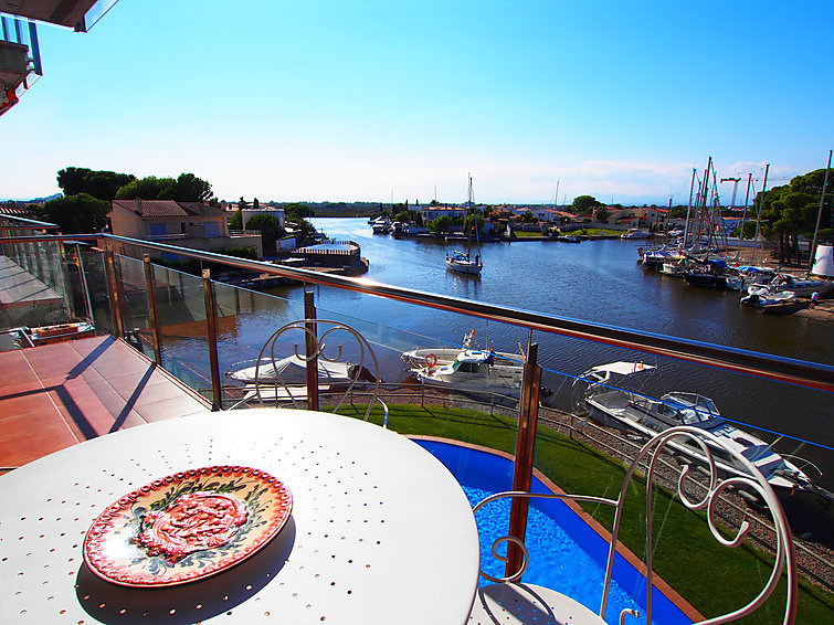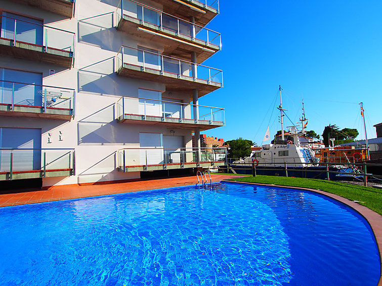 Santa Margarita: Groot, moderne, gezellig flatgebouw "Cap Mestral", van 5 verdiepingen. In de wijk Santa Margarita, 3 km van het centrum van Roses, rustige, zonnige ligging, gebied met weinig verkeer, 900 m van zee, 900 m van het strand, direct aan het kanaal, aan een doodlopende weg, op het zuidwesten. Voor medegebruik: groot, mooie, verzorgde tuin (omheind) met gazon, 3 zwembaden (100 m2, seizoensgebonden beschikbaarheid: 01.Jun. - 30.Sep.). In het huis: lift. Parkeerplaats, gemeenschappelijke garage. Levensmiddelenwinkel 500 m, supermarkt, winkelcentrum 1 km, restaurant 500 m, bar, bushalte 1 km, zandstrand "Santa Margarita" 900 m, duikschool 1 km. Jachthaven 4 km, tennis 1 km, midgetgolf 1 km. Attracties in de buurt: Parque Acuático Aquabrava Roses 1.5 km, Túnel del viento y Skydive Empuriabrava 5.6 km, Museo Dalí Figueres 19 km, Castillo y festival de Perelada 20 km, Monasterio de Sant Pere de Rodes 19 km, Ruinas de St. Martí de Empuries 27 km. Geschikt voor families. De sleuteloverdracht vindt plaats bij het agentschap Interhome in Roses.